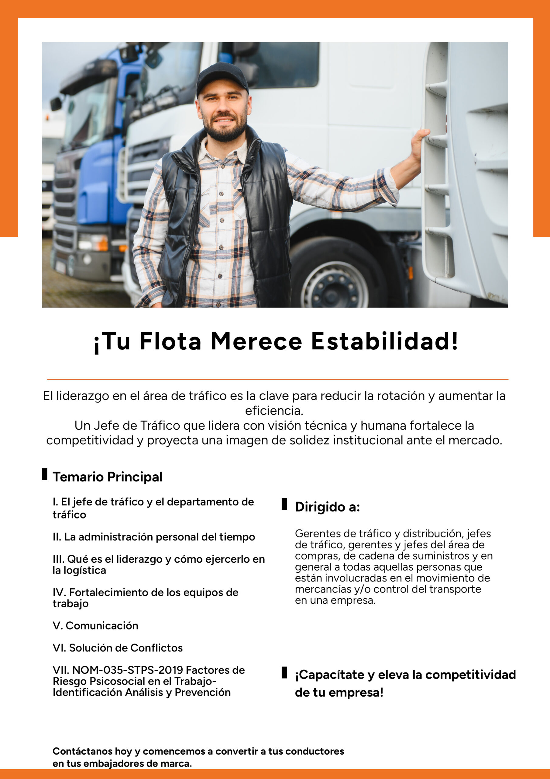 - Empresarios y Propietarios de Flotas que desean profesionalizar los mandos medios de su organización para reducir la rotación de operadores y elevar el nivel de servicio al cliente.
