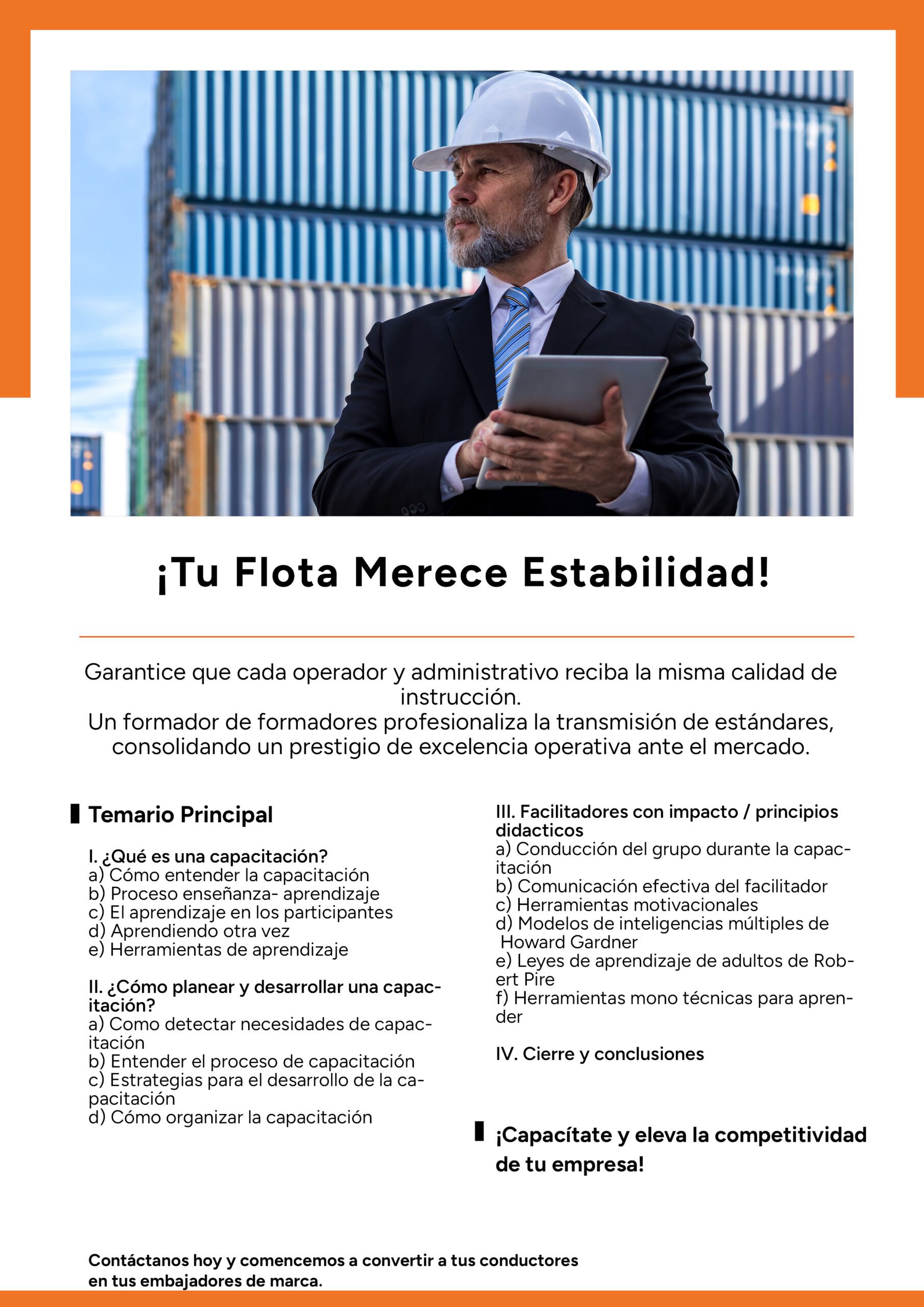 Dotar a los participantes de las competencias andragógicas, técnicas didácticas y herramientas de diseño instruccional necesarias para planear, conducir y evaluar acciones de capacitación de alto impacto. Al finalizar el curso, el participante será capaz de estructurar contenidos lógicos, dominar el manejo de grupos difíciles, aplicar dinámicas de aprendizaje acelerado y asegurar la transferencia del conocimiento al puesto de trabajo.