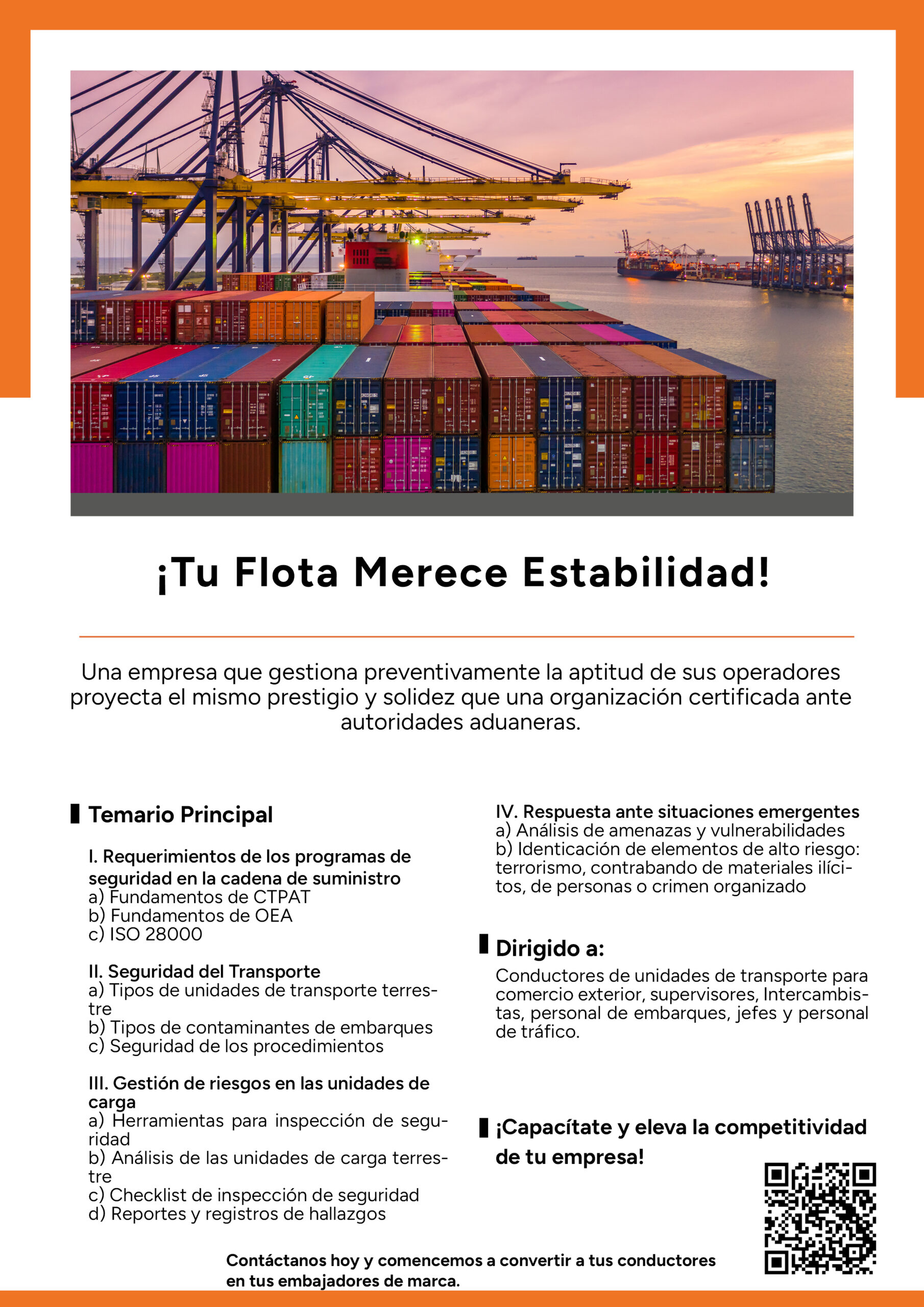 Este curso está diseñado para el personal operativo y de supervisión que tiene la responsabilidad de garantizar que los vehículos circulen en condiciones óptimas de seguridad, tales como: