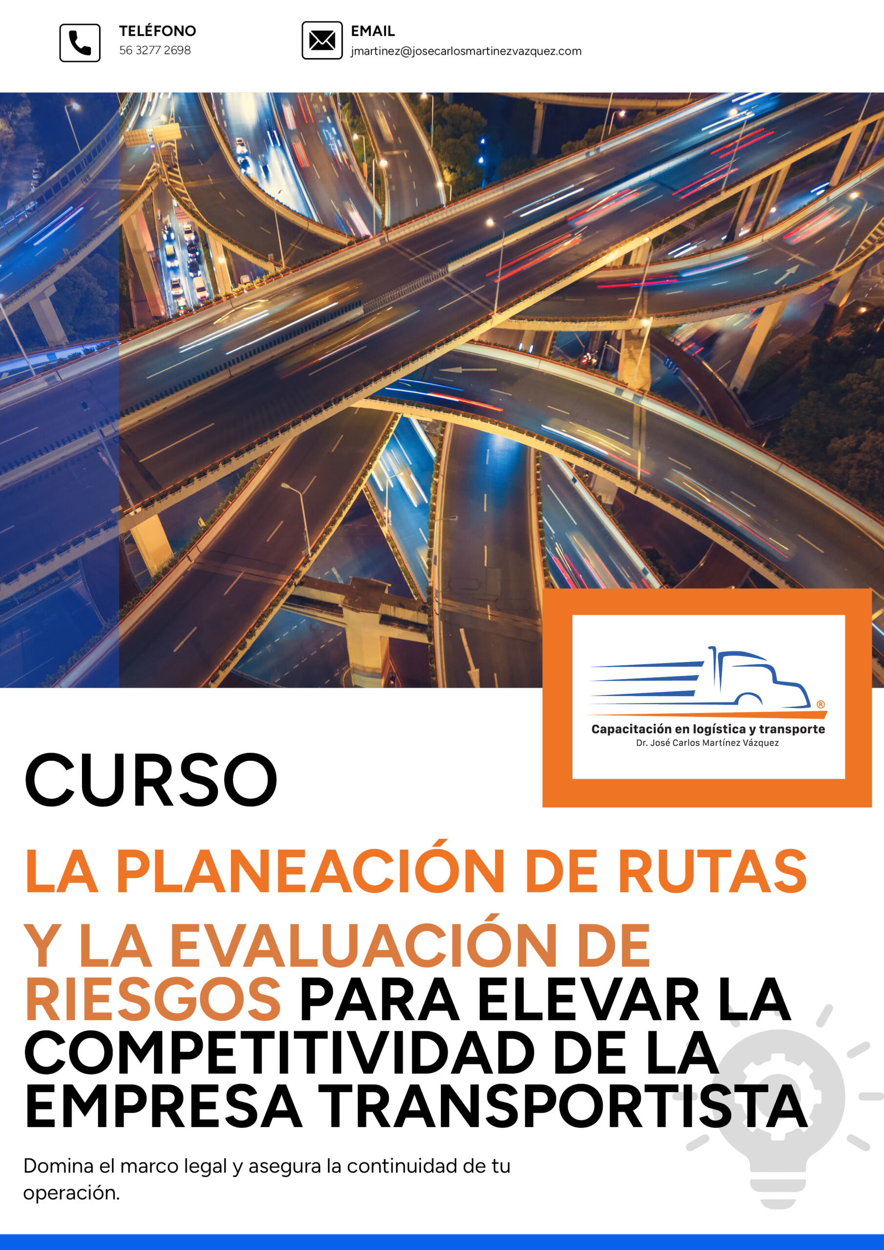 Dotar a los participantes de las metodologías, herramientas de análisis y criterios técnicos necesarios para diseñar rutas eficientes y evaluar los riesgos asociados al traslado de mercancías. Al finalizar el curso, el participante será capaz de estructurar planes de ruta optimizados que balanceen el costo y el tiempo, implementar matrices de riesgo dinámicas y establecer protocolos operativos que incrementen la seguridad del conductor, la carga y la competitividad de la empresa.